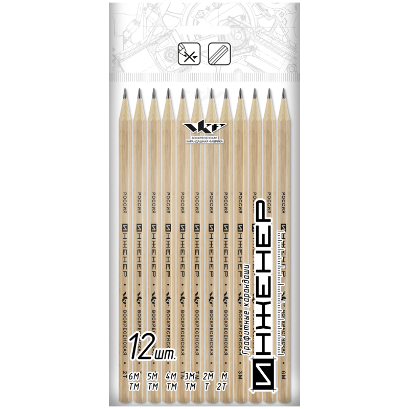 Набор карандашей ч/г Воскресенская карандашная фабрика "Инженер" 12шт., 2Т-6М, заточ., пакет, европодвес