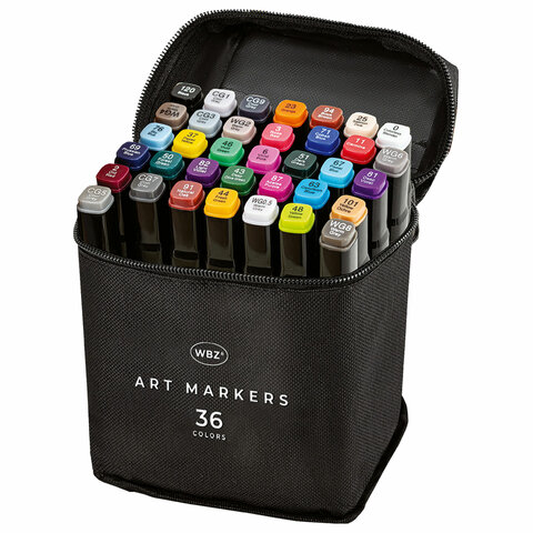 Маркеры для скетчинга двусторонние, НАБОР 36 шт, текстильный чехол, WBZ, 152572