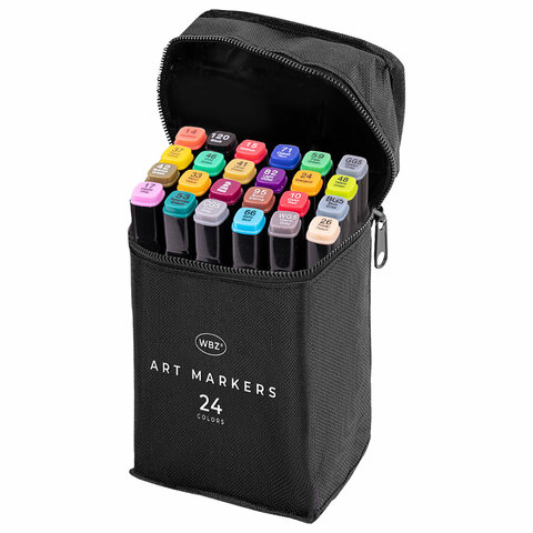 Маркеры для скетчинга двусторонние, НАБОР 24 шт, базовые цвета, в чехле, WBZ, 152571