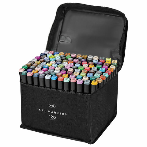 Маркеры для скетчинга двусторонние, НАБОР 120 шт, текстильный чехол, WBZ, 152576