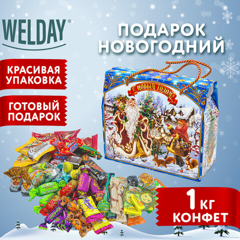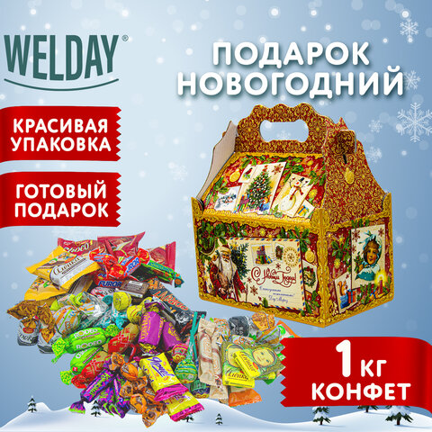 Подарок новогодний "Чудесная Встреча", НАБОР конфет 1000 г, картонная коробка, WELDAY