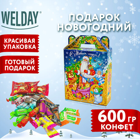 Подарок новогодний "Дед мороз на санях", НАБОР конфет 600 г, картонная коробка, WELDAY