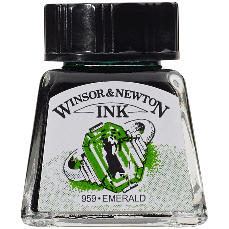 Тушь Winsor&Newton для рисования, изумрудный, стекл. флакон 14мл