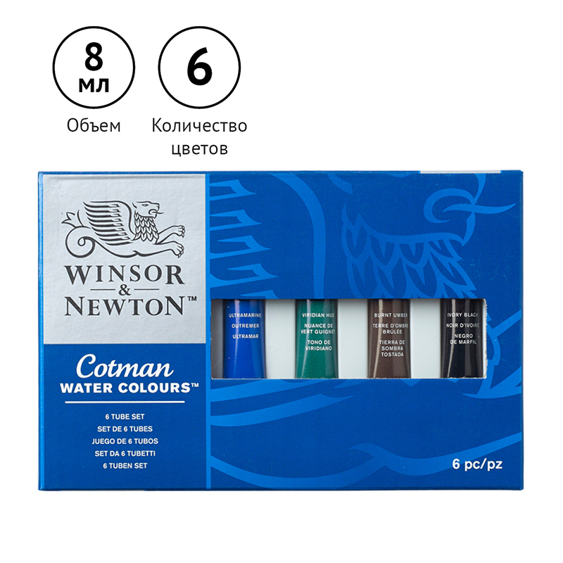 Акварель Winsor&Newton "Cotman" для начинающих, 6цв., 8мл, туба, картонная коробка