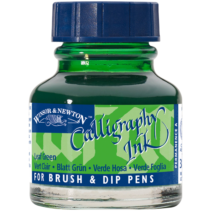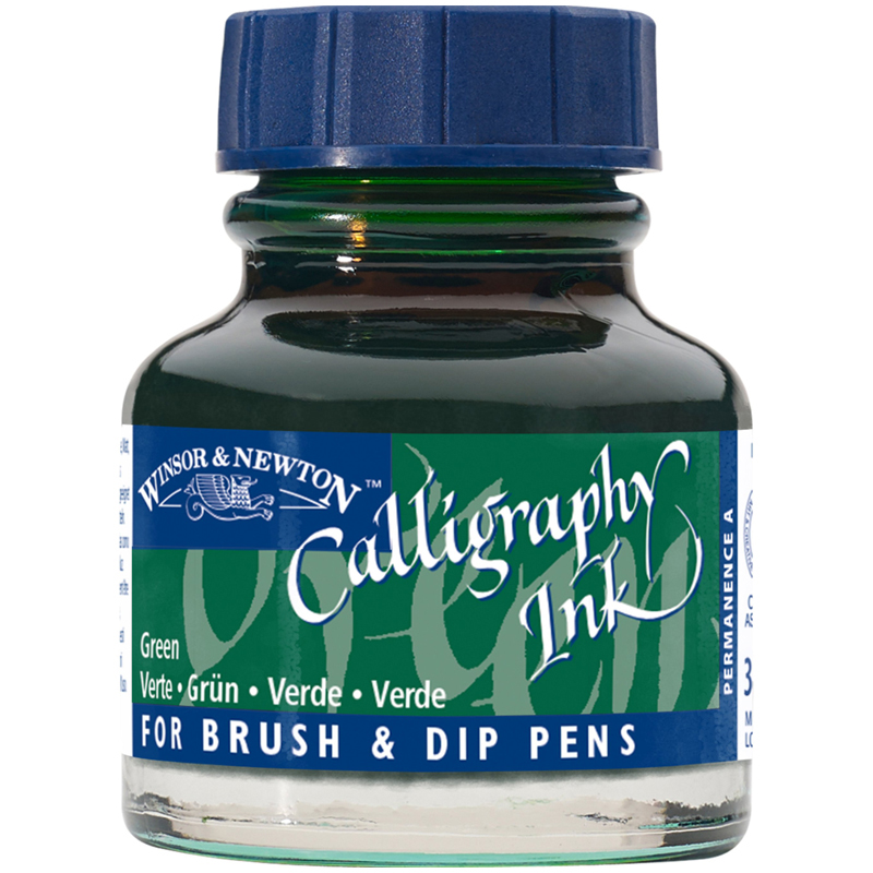 Тушь Winsor&Newton для каллиграфии (синяя крышка), 30мл, зеленый лист, стекл. флакон