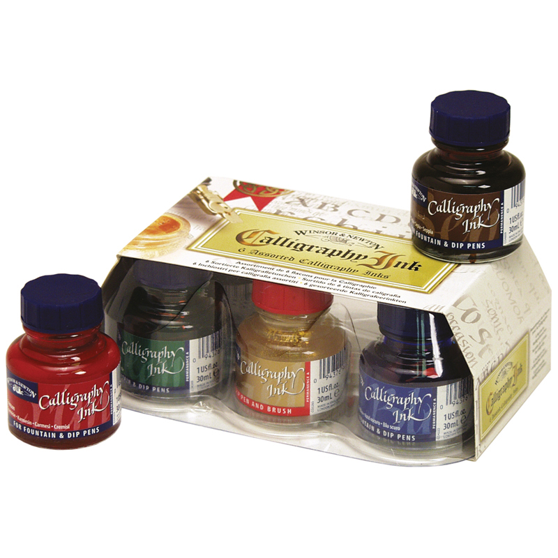 Набор туши художественной Winsor&Newton для каллиграфии, 6цв., 30мл (чер., алый, темно-синий, зел., сепия, золотой), стекл. флакон, в картон. коробке