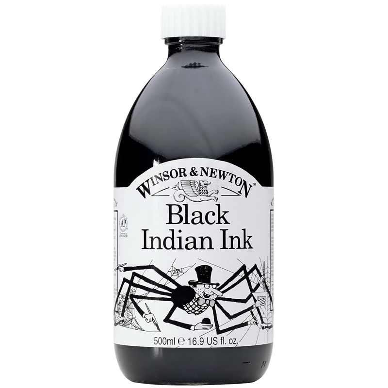 Тушь для рисования Winsor&Newton, черный (Индийская), 500мл, стекл. флакон.