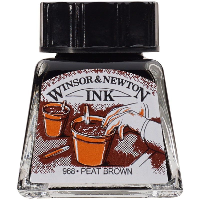 Тушь Winsor&Newton для рисования, торфяно-коричневый, стекл. флакон 14мл