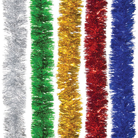 Дождик новогодний, ширина 200 мм, длина 1,5 м, ассорти 5 цветов, штрихкоды 73356, 73370, 73394, 73400, 73417, 20-150