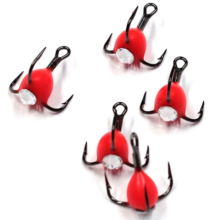 Крючок-тройник ЯМАН с камнем, размер 12 INT, цвет ФК 5 шт.