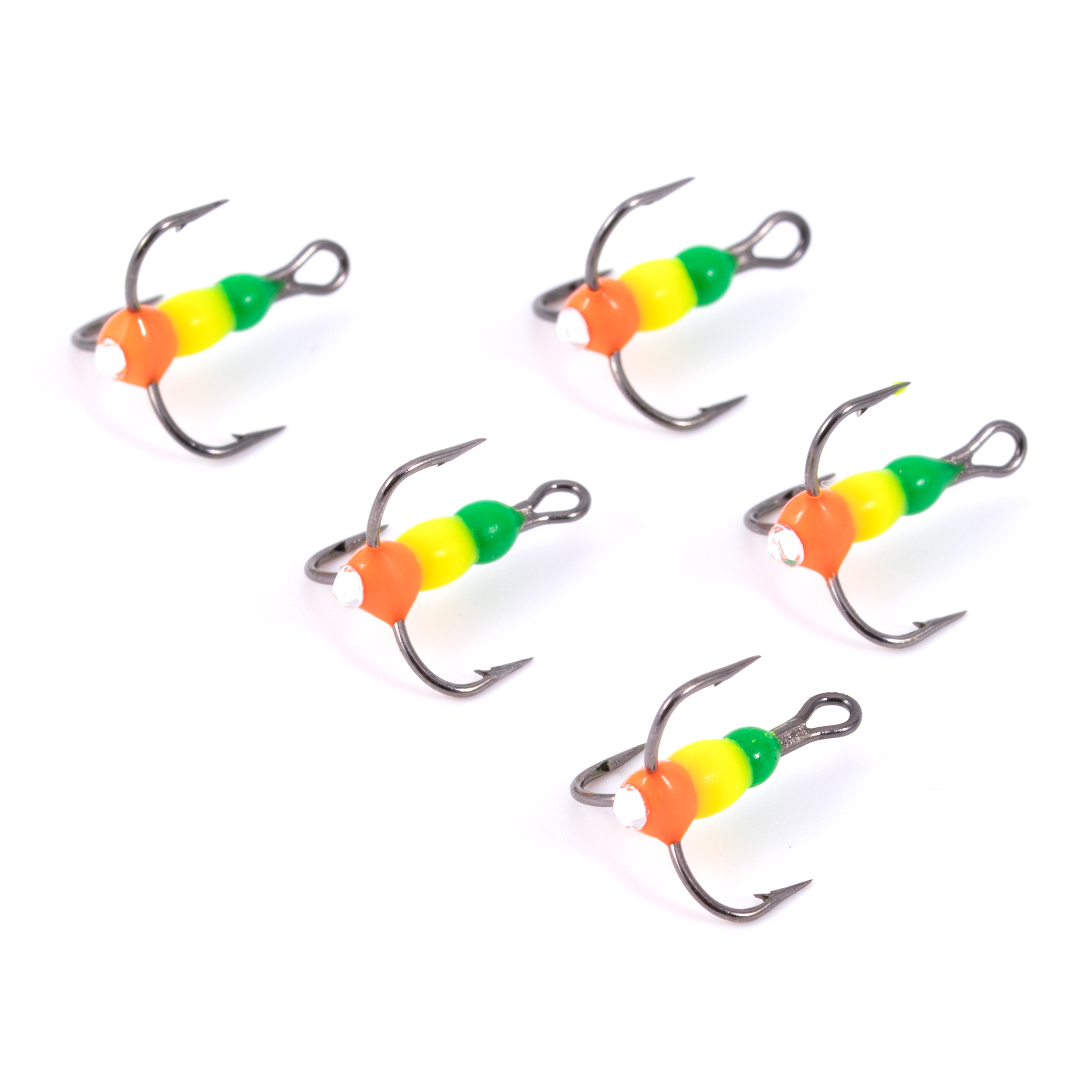 Крючок-тройник ЯМАН "Светофор" с глазком, размер 12 (INT), цв. флуоресцентный (5 шт.)