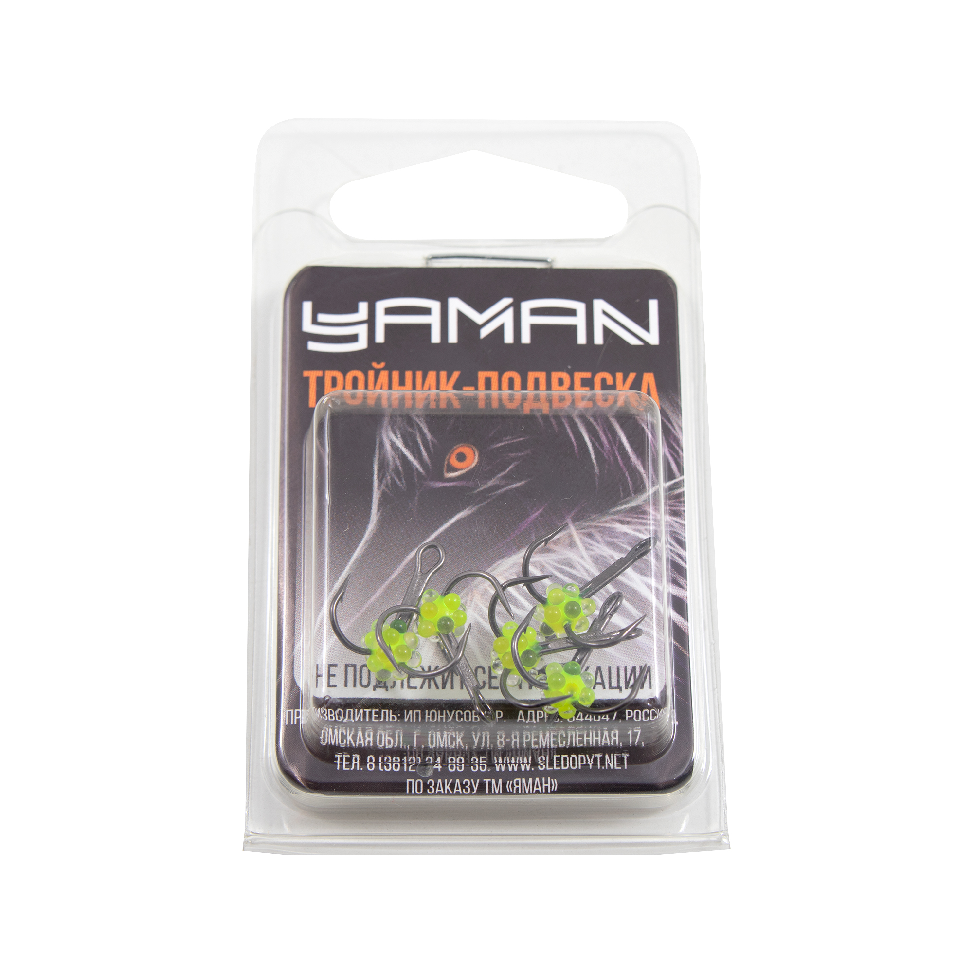Крючок-тройник ЯМАН "Светофор" с глазком, размер 18 (INT), цв. флуоресцентный (5 шт.)