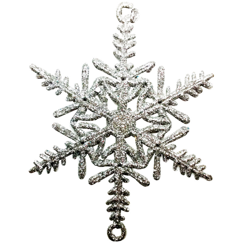 Елочное украшение пластиковое "Снежинка ажурная" 10см, глиттер, серебро