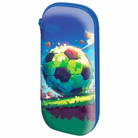 Пенал ЮНЛАНДИЯ для мальчиков, 3 отделения, мягкий, "Футбол", синий, 20х7х9 см, 228979