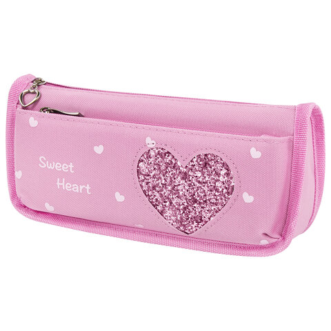 Пенал-косметичка ЮНЛАНДИЯ, 2 отделения, полиэстер, "Heart", розовый, 21х6х9 см, 270258