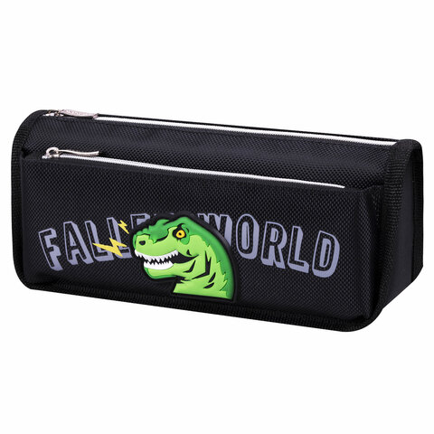 Пенал мягкий ЮНЛАНДИЯ, 2 отделения, полиэстер, "Roar", черный, 21х9х6 см, 272347