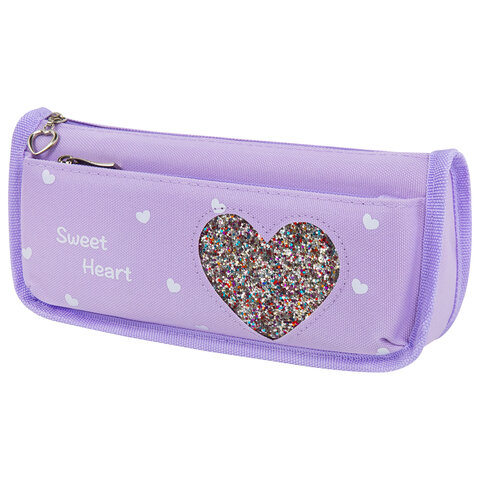 Пенал-косметичка ЮНЛАНДИЯ, 2 отделения, полиэстер, "Heart", фиолетовый, 21х6х9 см, 270259