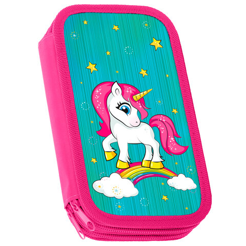 Пенал ЮНЛАНДИЯ, 2 отделения, ламинированный картон, 19х11 см, "Neon unicorn", 270172