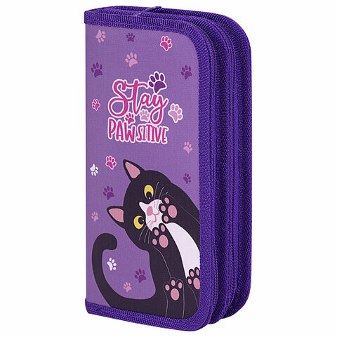 Пенал ЮНЛАНДИЯ, 2 отделения, полиэстер, 19х11 см, "Stay Positive", 271539