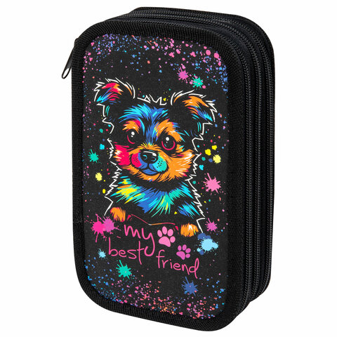 Пенал ЮНЛАНДИЯ, 3 отделения, картон с эффектом soft-touch, 19х11 см, "True friend", 272266