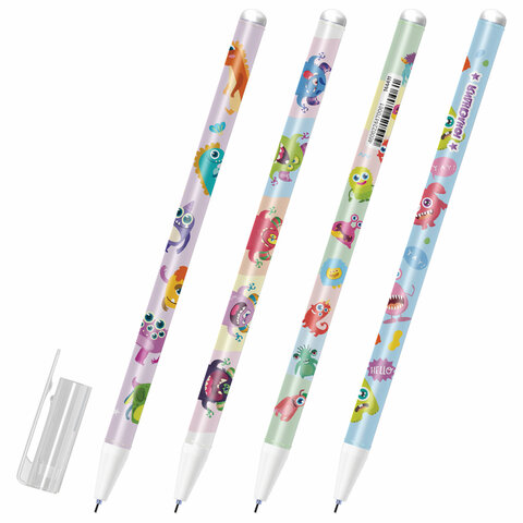 Ручка стираемая гелевая ЮНЛАНДИЯ "Монстрики", корпус ассорти, СИНЯЯ, узел 0,5 мм, линия письма 0,35 мм, 144242