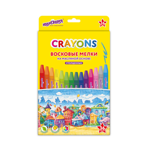 Восковые мелки утолщенные на масляной основе ЮНЛАНДИЯ "ДОМИКИ", 36 цветов, 273092