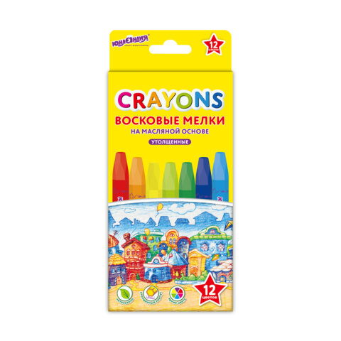Восковые мелки утолщенные на масляной основе ЮНЛАНДИЯ "ДОМИКИ", 12 цветов, 273090