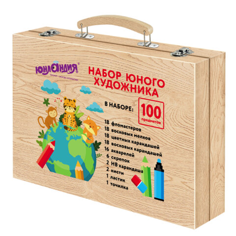 Набор ЮНОГО ХУДОЖНИКА "ANIMALS" для рисования и творчества в кейсе ЮНЛАНДИЯ, 100 предметов, 665675