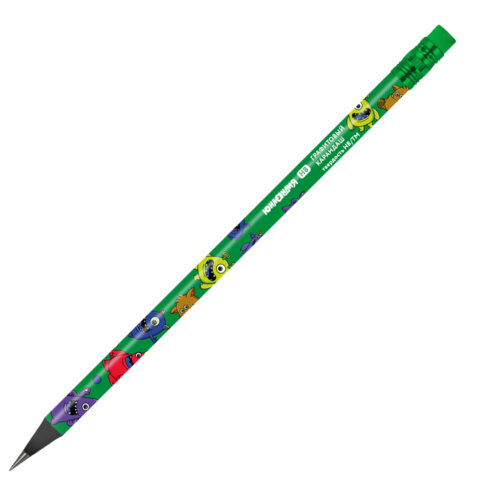 Карандаш чернографитный ЮНЛАНДИЯ "МОНСТРИКИ", 1 шт, HB, с ластиком, корпус ассорти, 182014