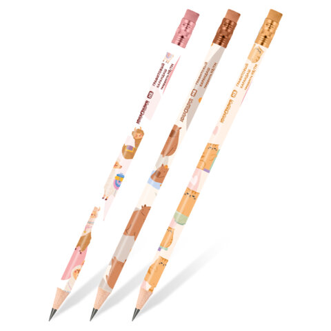 Набор карандашей чернографитных ЮНЛАНДИЯ "ЖИВОТНЫЕ", 12 штук, HB, с ластиком, корпус ассорти, 182035