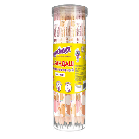Карандаш чернографитный ЮНЛАНДИЯ "ЮНЛАНДИК", 1 шт., HB, с ластиком, корпус ассорти, 181752