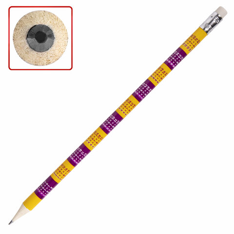 Карандаш чернографитный с таблицей умножения ЮНЛАНДИЯ "ЮНЛАНДИК-МАТЕМАТИК", HB, с ластиком, 181581