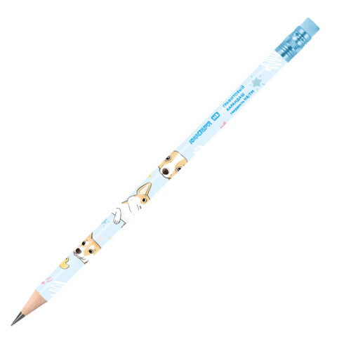 Карандаш чернографитный ЮНЛАНДИЯ "КОРГИ", 1 шт, HB, с ластиком, корпус ассорти, 182009