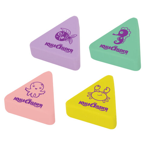 Ластик ЮНЛАНДИЯ "Морские обитатели", 27х27х9мм, цвет ассорти, треугольный, 228714