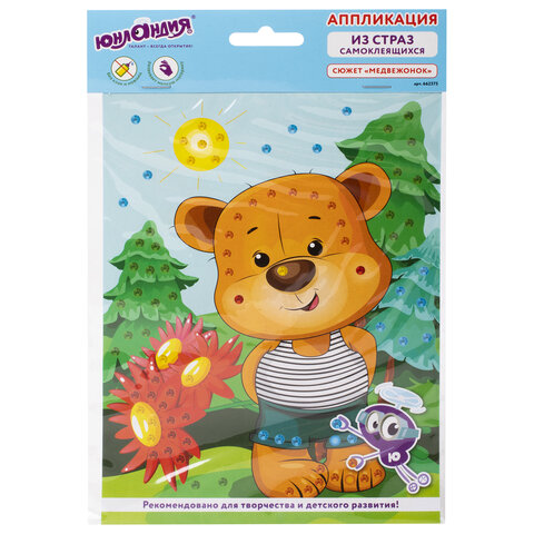 Набор для творчества "Аппликация из страз самоклеящаяся", "Медвежонок", 20х15 см, ЮНЛАНДИЯ, 662375