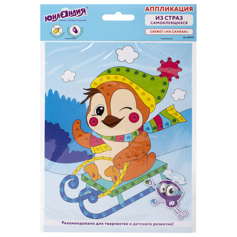 Набор для творчества "Аппликация из страз самоклеящаяся", "На санках", 20х15 см, ЮНЛАНДИЯ, 662378