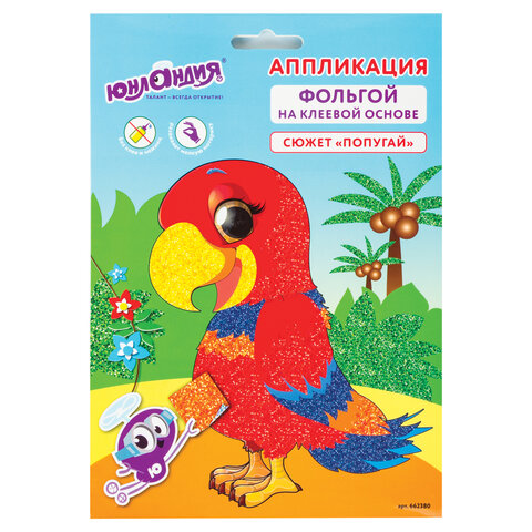 Набор для творчества "Аппликация из фольги", "Попугай", самоклеящаяся основа 20х15 см, ЮНЛАНДИЯ, 662380