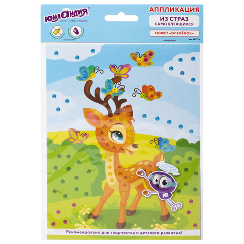 Набор для творчества "Аппликация из страз самоклеящаяся", "Оленёнок", 20х15 см, ЮНЛАНДИЯ, 662374