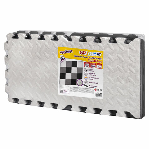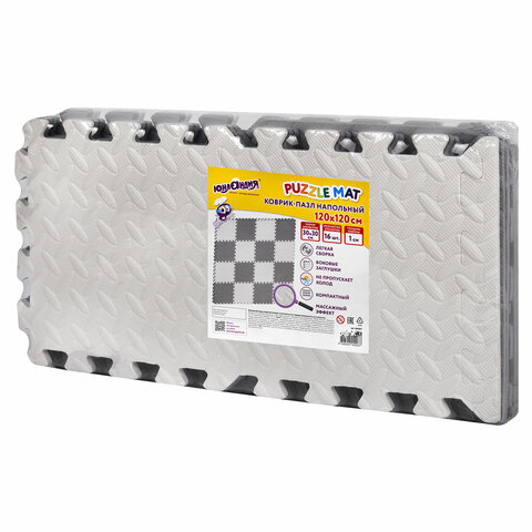Коврик-пазл напольный 1,2х1,2 м, 16 шт., 30х30 см, толщина 1 см, серый, черный, св.серый, ЮНЛАНДИЯ, 664817
