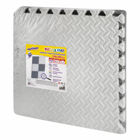 Коврик-пазл напольный 1,5х1 м, 6 шт., 50х50 см, толщина 1 см, серый, св.серый, ЮНЛАНДИЯ, 664810