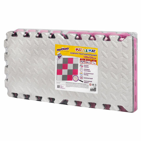 Коврик-пазл напольный 1,2х1,2 м, 16 шт., 30х30 см, толщина 1 см, серый, розовый, св.серый, ЮНЛАНДИЯ, 664815