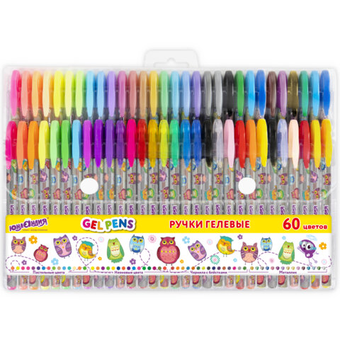 Ручки гелевые ЮНЛАНДИЯ, НАБОР 60 ЦВЕТОВ, узел 1 мм, линия письма 0,5 мм, 144452