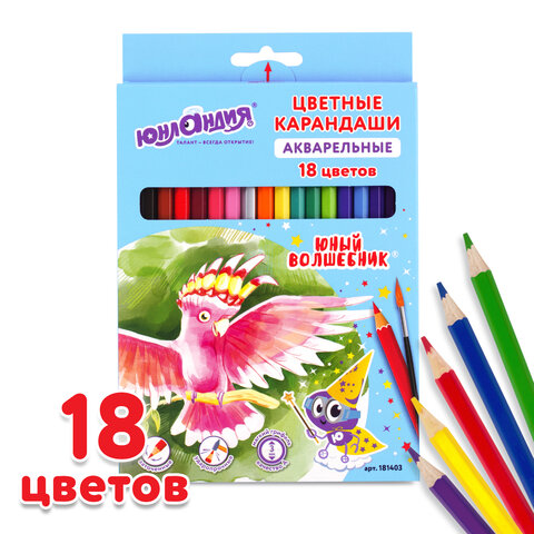 Карандаши цветные акварельные ЮНЛАНДИЯ "ЮНЫЙ ВОЛШЕБНИК", 18 цветов, шестигранные, грифель 3 мм, натуральное дерево, 181403