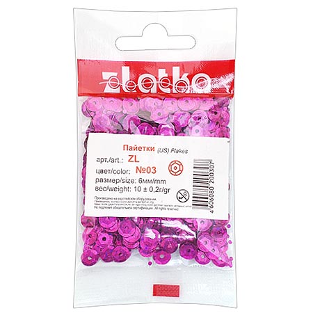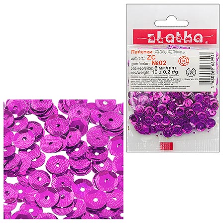 Пайетки декоративные " Zlatka " 10г 6мм, малиновые, голографический эффект, пакет, европодвес