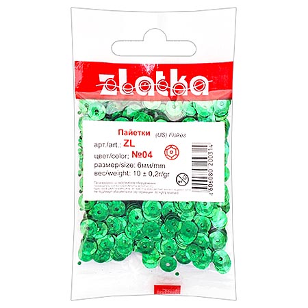 Пайетки декоративные " Zlatka " 10г 6мм, зеленые, голографический эффект, пакет, европодвес