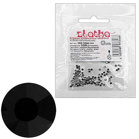 Стразы " Zlatka " 2,4мм стекло 144шт, черные, пакет, европодвес
