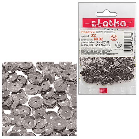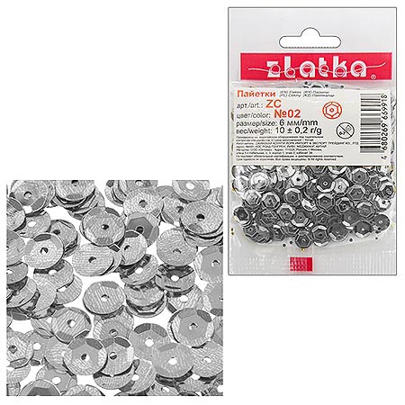 Пайетки декоративные " Zlatka " 10г*6мм под серебро