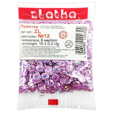 Пайетки декоративные " Zlatka " 10г 6мм, светло-сиреневые, голографический эффект, пакет, европодвес