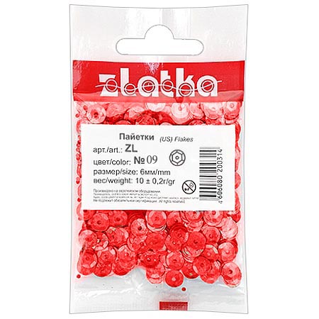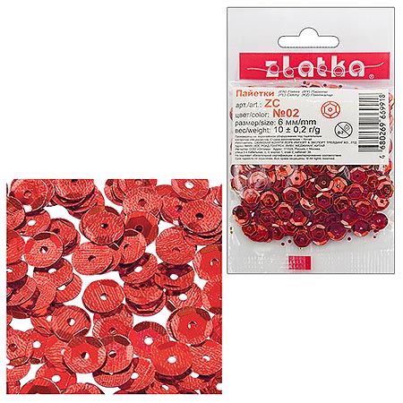 Пайетки декоративные " Zlatka " 10г 6мм, красные, голографический эффект, пакет, европодвес