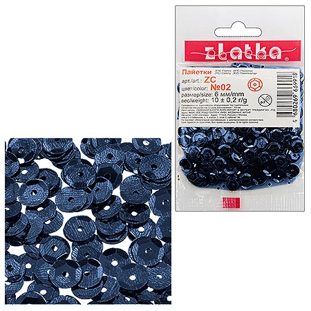 Пайетки декоративные " Zlatka " 10г*6мм темно-синие